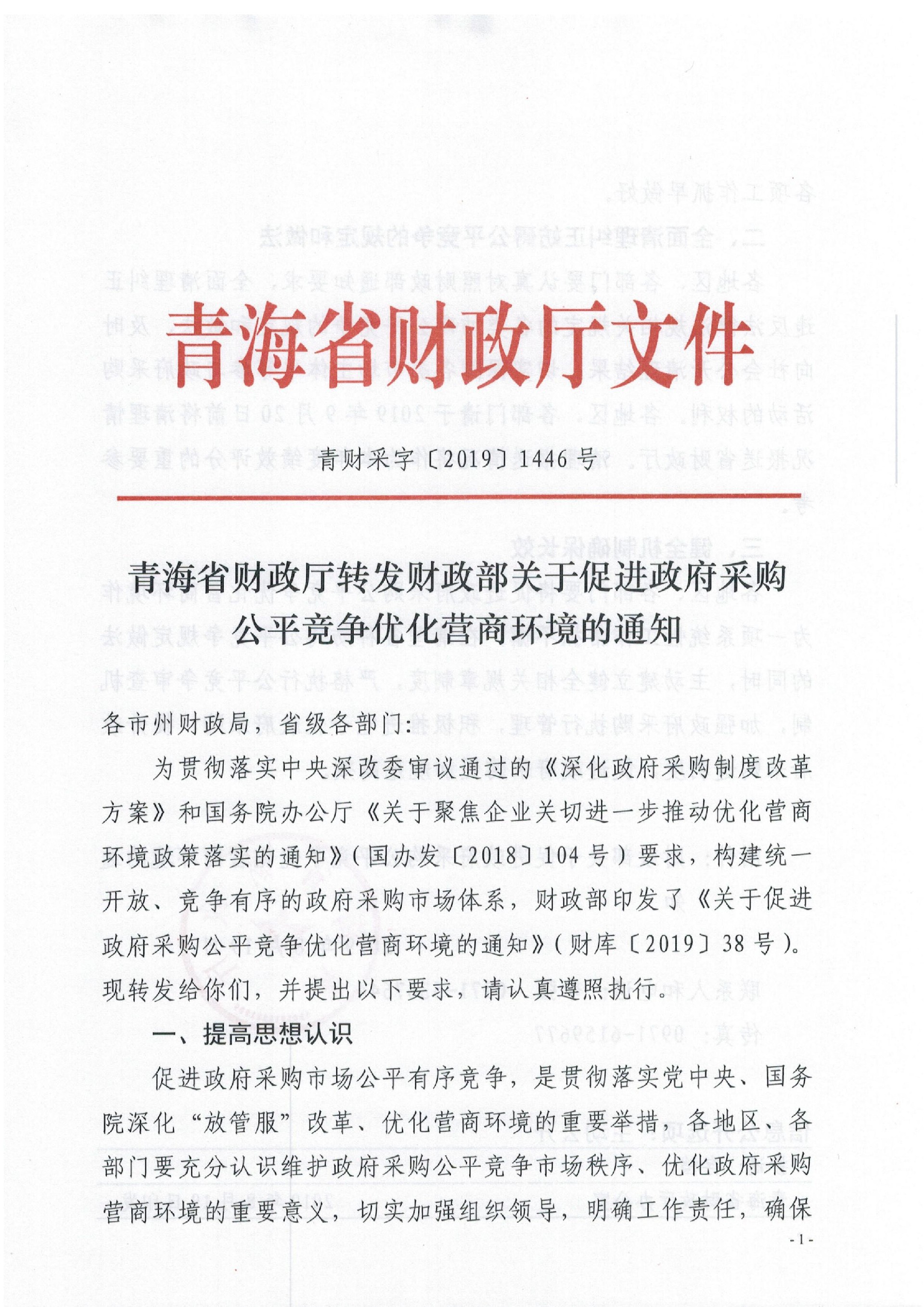 青海省財(cái)政廳轉(zhuǎn)發(fā)財(cái)政部關(guān)于促進(jìn)政府采購(gòu)公平競(jìng)爭(zhēng)優(yōu)化營(yíng)商環(huán)境的通知(青財(cái)采字〔2019〕1446號(hào))