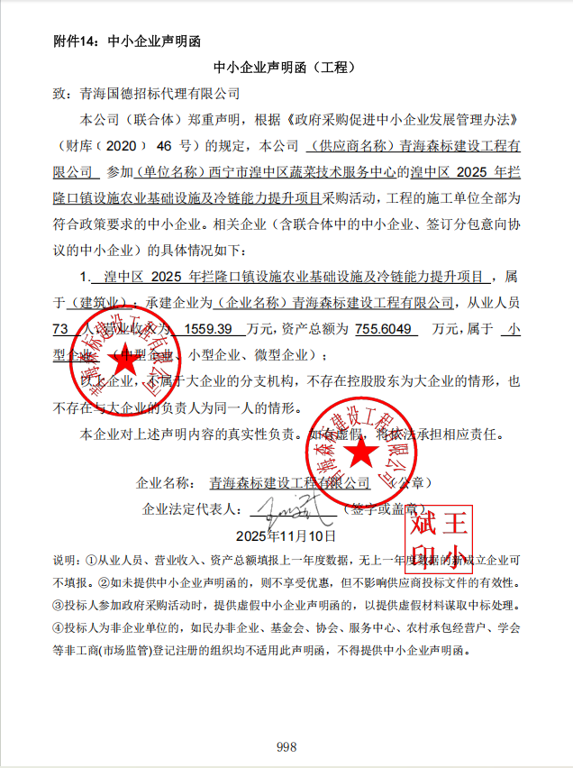 一、項目編號:青海國德競磋(工程)2025-076 二、項目名稱:湟中區(qū)2025年攔隆口鎮(zhèn)設施農業(yè)基礎設施及冷鏈能力提升項目 三、中標(成交)信息 1.中標結果: