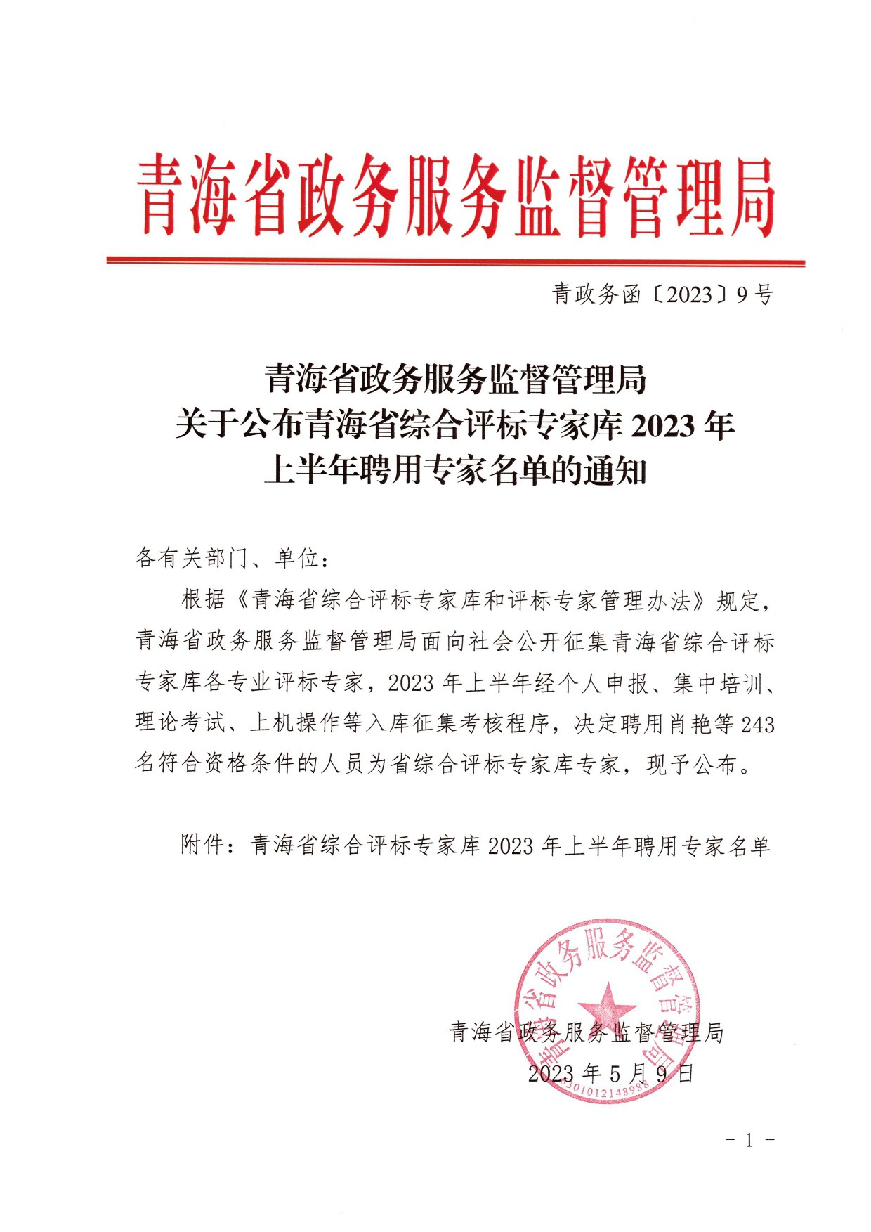 關(guān)于公布青海省綜合評(píng)標(biāo)專(zhuān)家?guī)?023年上半年聘用專(zhuān)家名單的通知