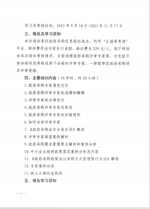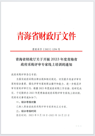 青海省財政廳關(guān)于開展2023年度青海省政府采購評審專家線上培訓(xùn)的通知