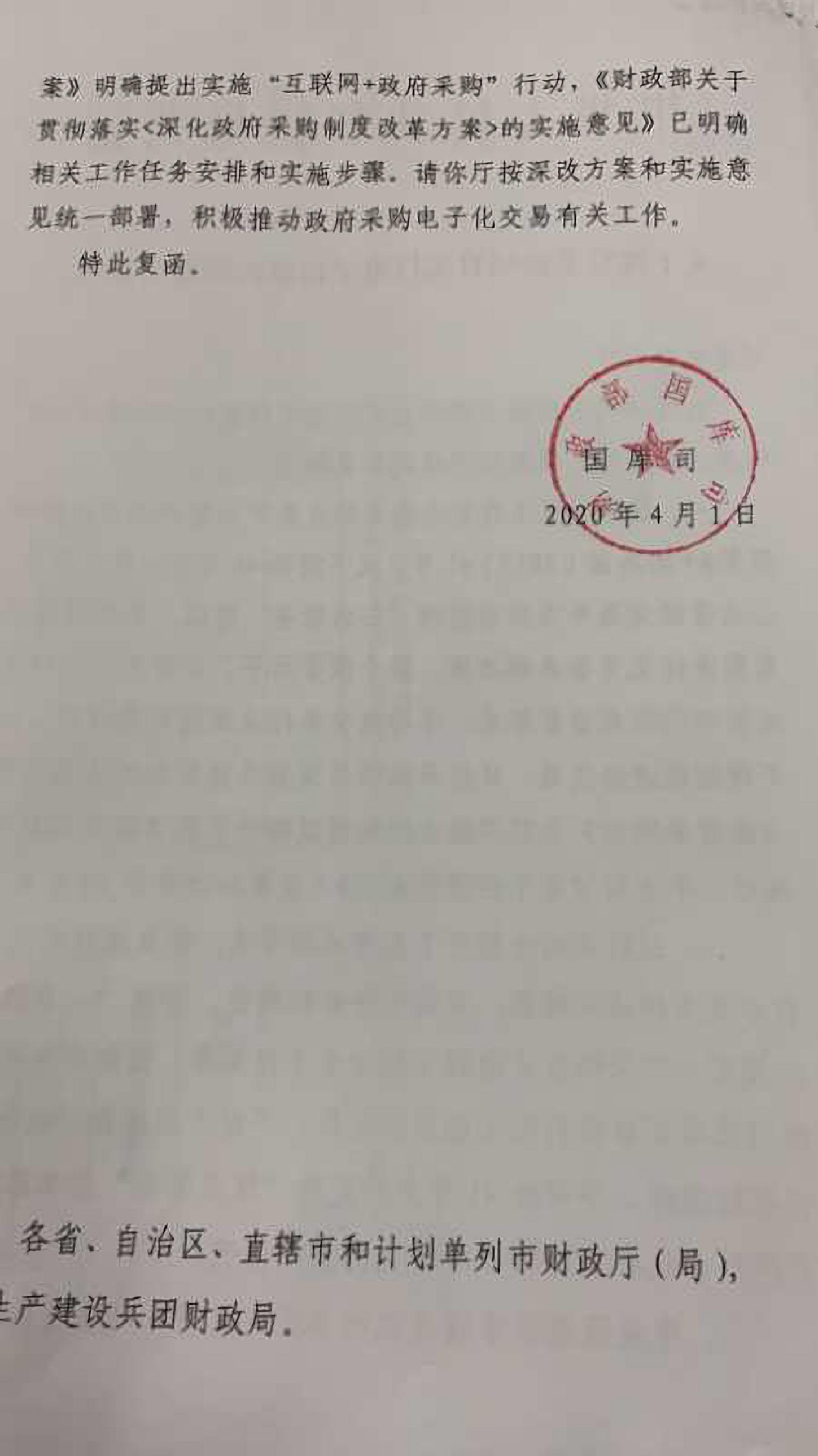 財(cái)政部關(guān)于湖南省財(cái)政廳《關(guān)于政府采購項(xiàng)目實(shí)行電子招標(biāo)問題的請示》的復(fù)函