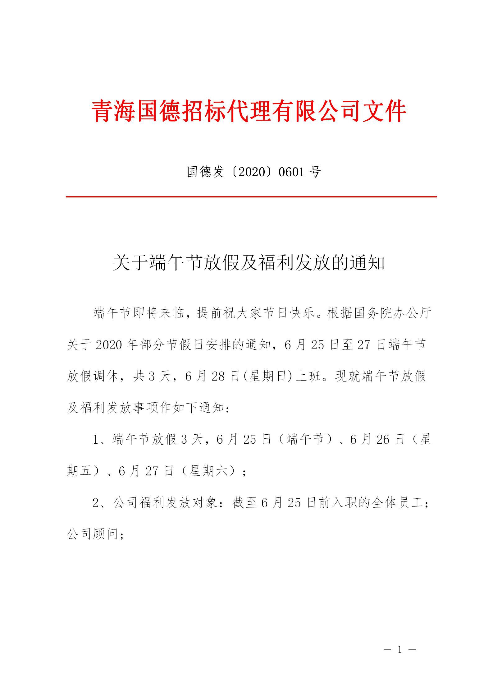 關于端午節(jié)放假及福利發(fā)放的通知