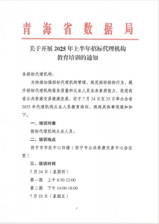 青海省數(shù)據(jù)局關(guān)于開(kāi)展2025年上半年招標(biāo)代理機(jī)構(gòu)教育培訓(xùn)的通知