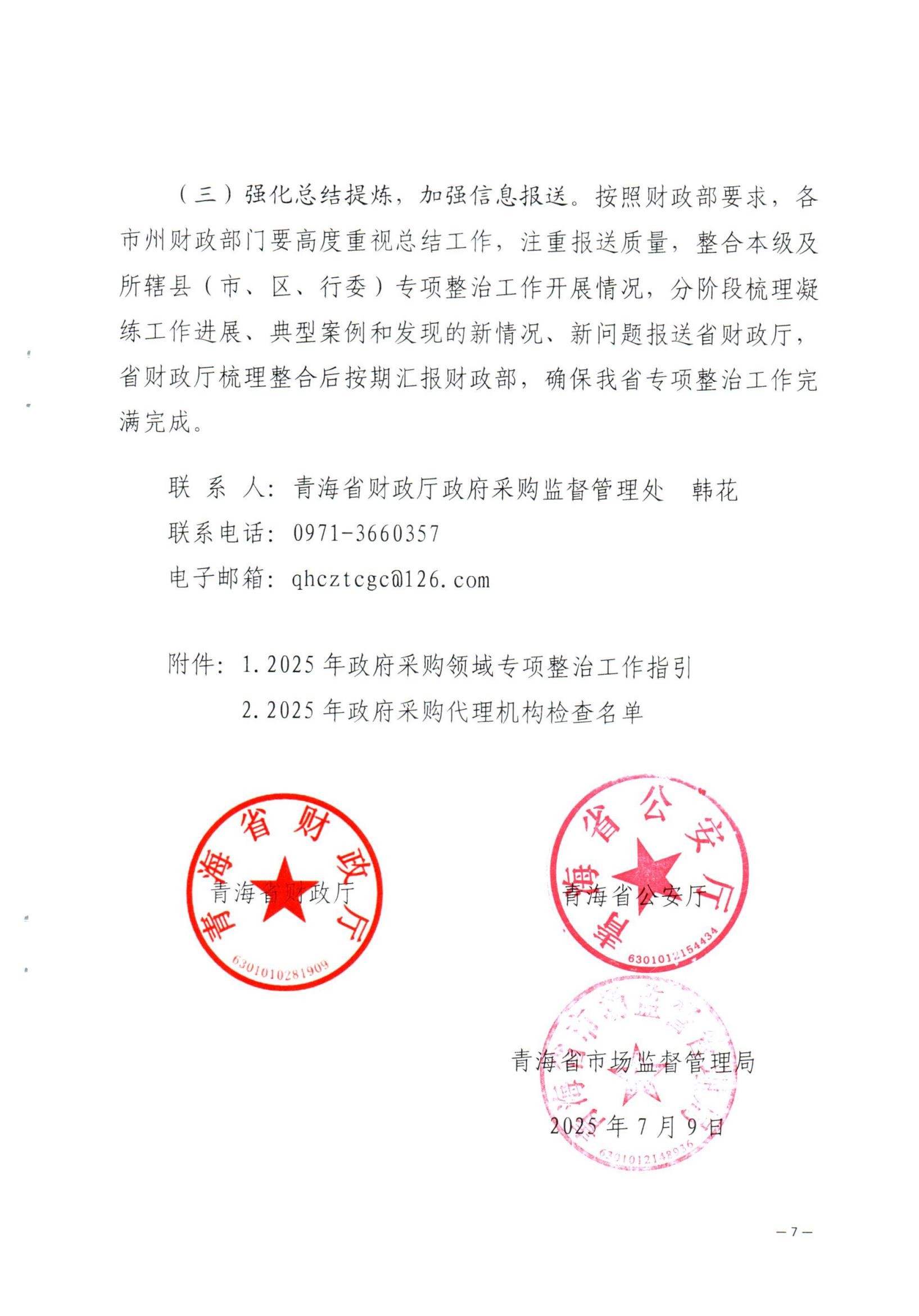 青海省財(cái)政廳 青海省公安廳 青海省市場(chǎng)監(jiān)督管理局 關(guān)于開展 2025年政府采購(gòu)領(lǐng)域“四類” 違法違規(guī)行為專項(xiàng)整治工作的通知