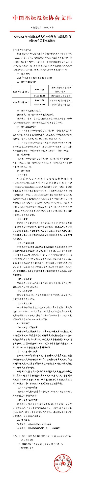 (通知原文)關(guān)于2025年度招標(biāo)采購(gòu)人員專(zhuān)業(yè)能力中級(jí)測(cè)試評(píng)價(jià)時(shí)間及有關(guān)事項(xiàng)的通知.pdf