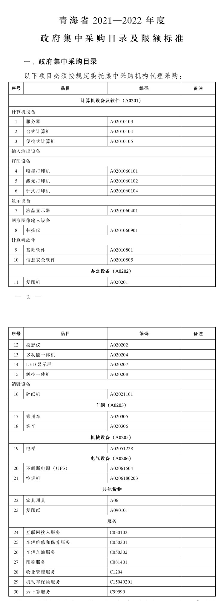 青海省人民政府辦公廳 關(guān)于印發(fā)青海省2021—2022年度政府集中 采購目錄及限額標(biāo)準(zhǔn)的通知各市、自治州人民政府,省政府各委、辦、廳、局: