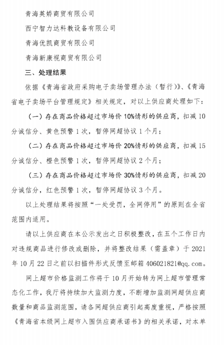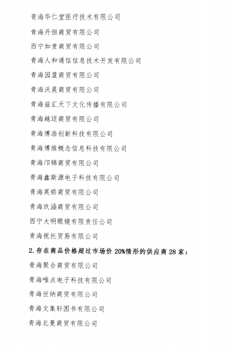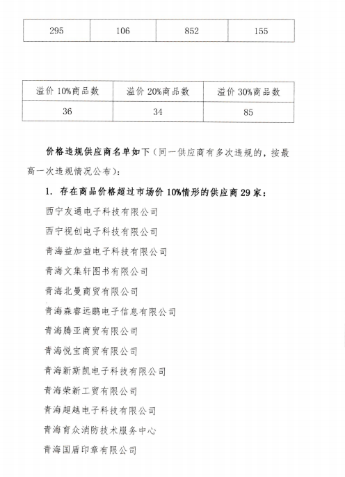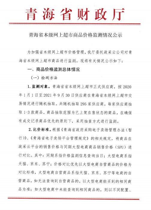 青海省本級網(wǎng)上超市商品價格監(jiān)測情況公示