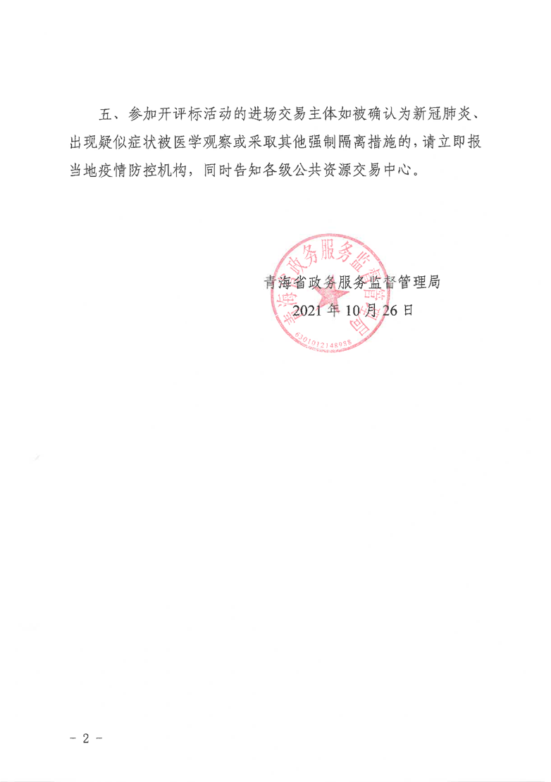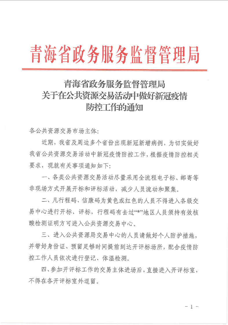 青海省政務(wù)服務(wù)監(jiān)督管理局關(guān)于在公共資源交易活動中做好新冠疫情防控工作的通知
