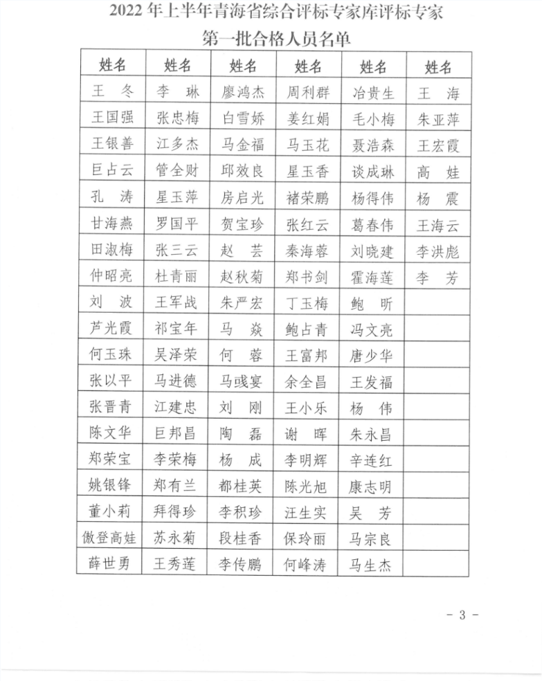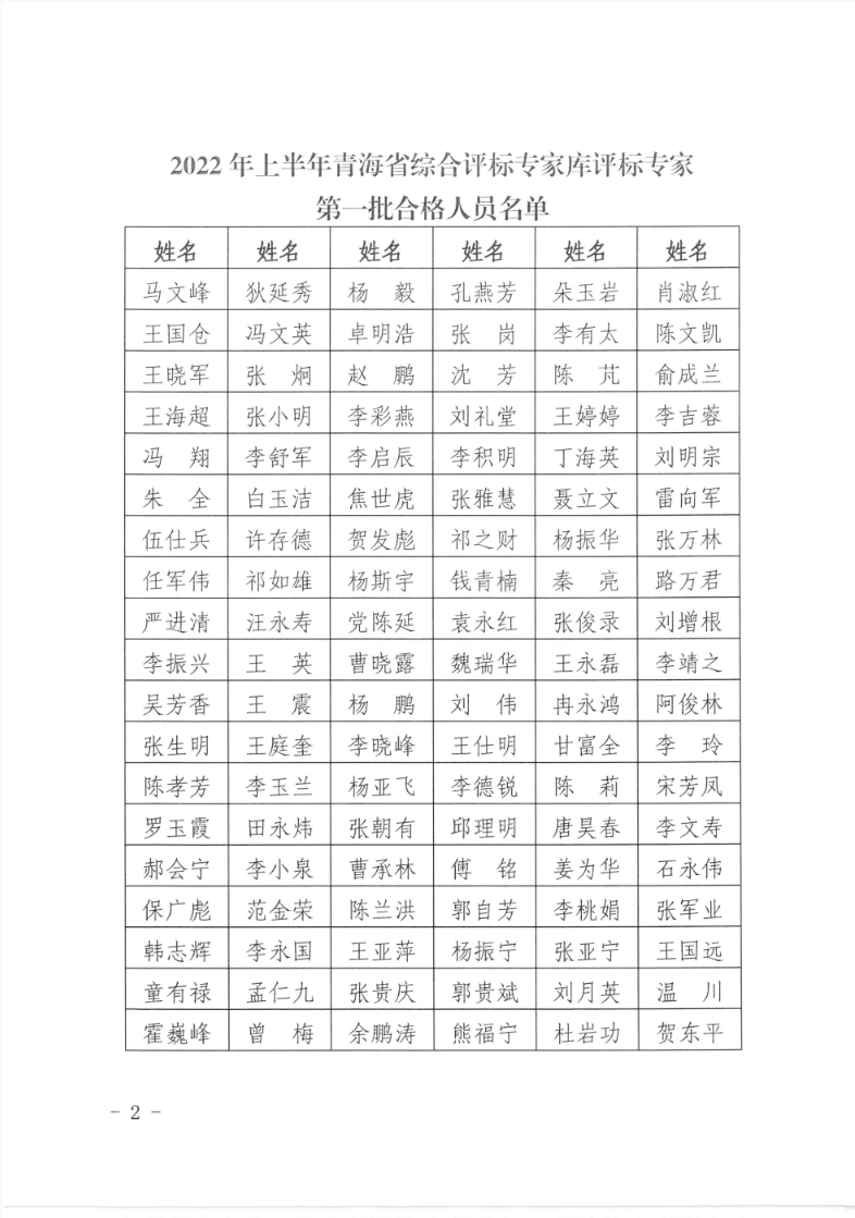 關(guān)于公布2022年上半年青海省綜合評標(biāo)專家?guī)煸u標(biāo)專家第一批合格人員名單的通知