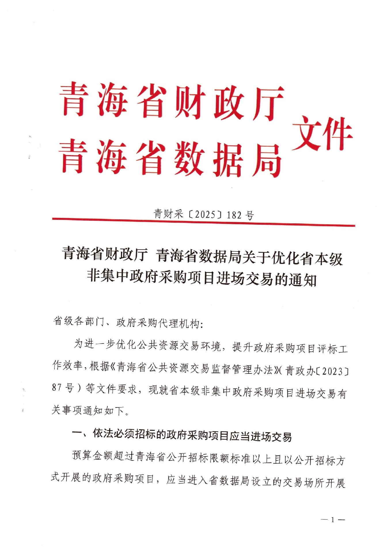青海省財政廳 青海省數(shù)據(jù)局關(guān)于優(yōu)化省本級非集中政府采購項目進場交易的通知